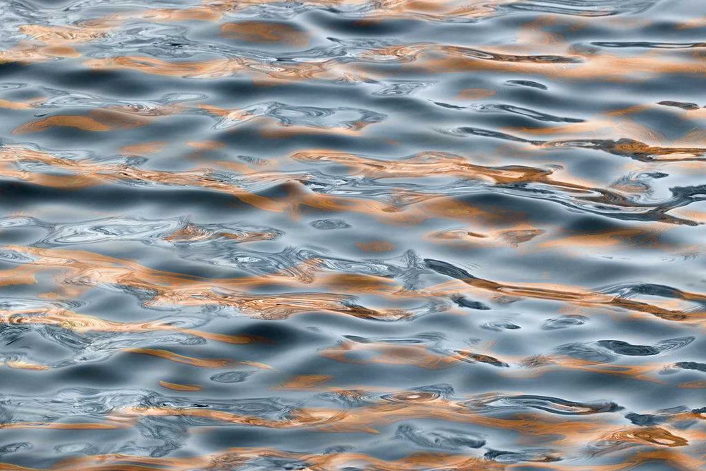 The Gold Sea series explores the surface of the sea capturing unique hues of gold, blue and orange. At just the right moment, the water ripples mingle with reflections to create a one of a kind artwork.