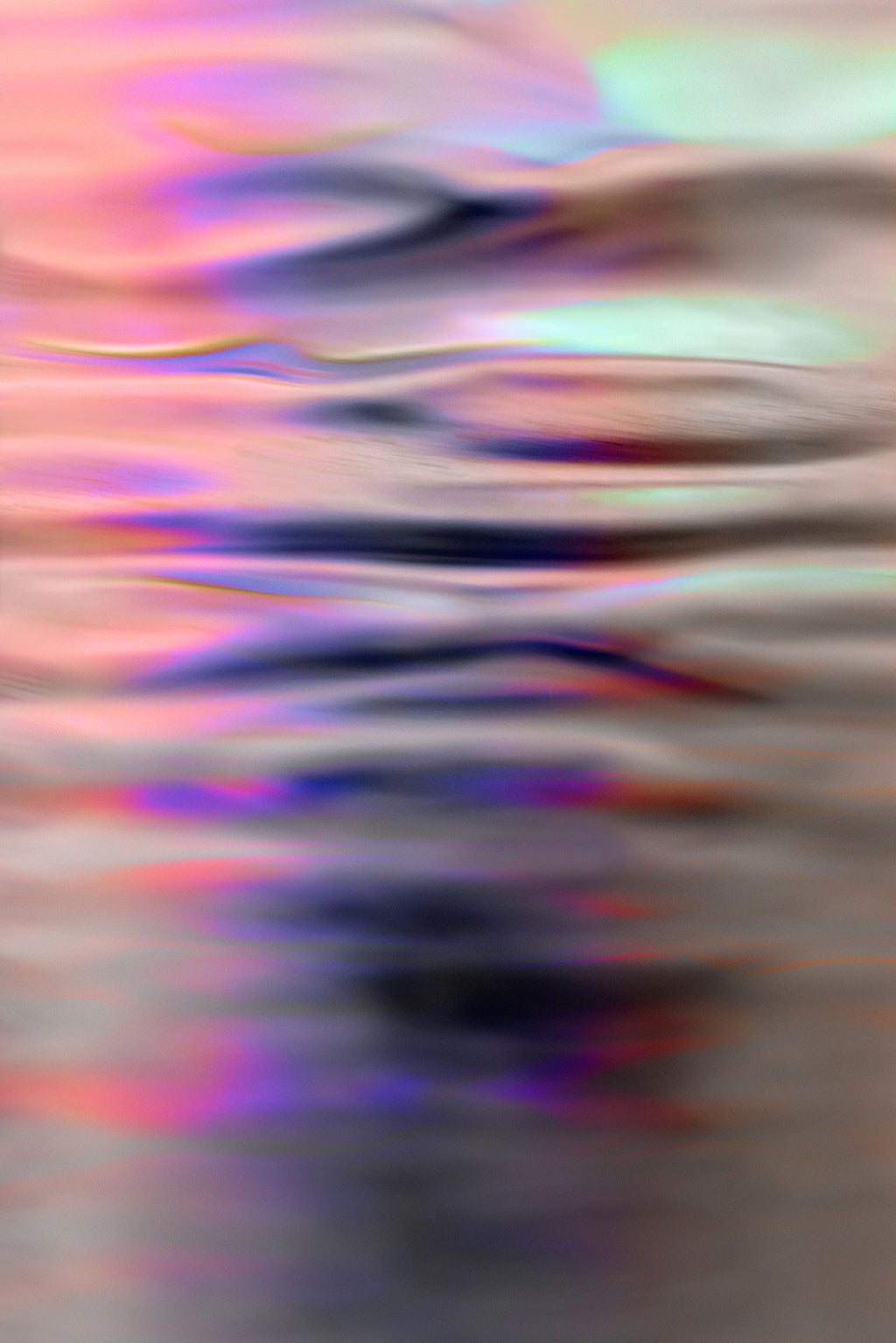 Intense colour is captured in the early morning reflected on a gentle stream. Hues of bold pink, purple and light green mingle with the ripple textures of the water surface of this Original Abstract Art.